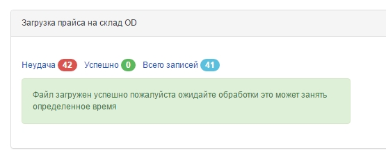 - Загрузка и обработка прайса занимает определенное время, поэтому дождитесь окончания загрузки и обработки. После завершения вы будете перенаправлены на страницу склада, где сможете продолжить работу